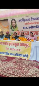 विधायक मैडम ने कहा कि आज शासकीय हाई स्कूल जोधपुर के बच्चियों द्वारा जो 50 सीटर प्री मैट्रिक आदीवासी कन्या छात्रावास में रहकर अध्ययन कर रही हैं एवं जोधपुर की बेटियां मुझे सिर्फ एक सूत्रीय ज्ञापन सौंपकर मांग की हैं शासकीय हाई स्कूल जोधपुर 1998 से विगत 29 वर्षों से संचालित है उसे 10+2 मे उन्नयन करा दिया जाए तो हम बेटियों को अध्ययन के लिए शहडोल नहीं जाना पड़ेगा और हम आगे पढ़ाई पूरी करेंगे,जिसे सुनकर विधायक मैडम ने बेटियों को आश्वस्त करते हुए कहा कि मै हाई स्कूल जोधपुर के हायर सेकेंडरी स्कूल के उन्नयन लिए पूरा-पूरा प्रयास करुंगी जिसे सुनकर वहां पर उपस्थित जनसमूह ने अपने स्थान पर खड़े होकर तालियों की गड़गड़ाहट से पूरे पंडाल को गुंजायमान कर विधायक मनीषा सिंह को जोरदार जयकारा लगाया।
